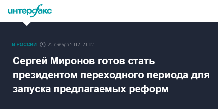 Сергей Миронов готов стать президентом переходного периода для запуска предлагаемых реформ