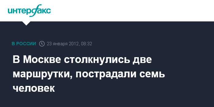 "В районе дома №95 по Волоколамскому шоссе столкнулись два маршрутных такси. Пострадали семь человек", - сказал собеседник агентства.