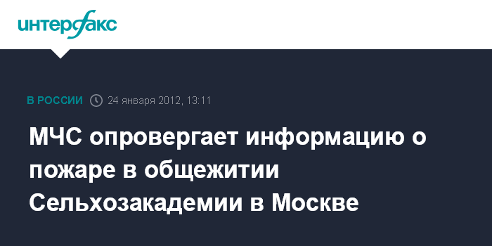 МЧС опровергает информацию о пожаре в общежитии Сельхозакадемии в Москве