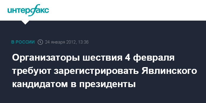 Организаторы шествия 4 февраля требуют зарегистрировать Явлинского кандидатом в президенты