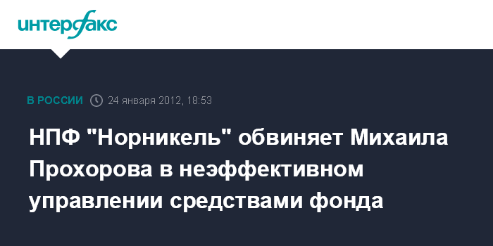 НПФ "Норникель" обвиняет Михаила Прохорова в неэффективном управлении средствами фонда