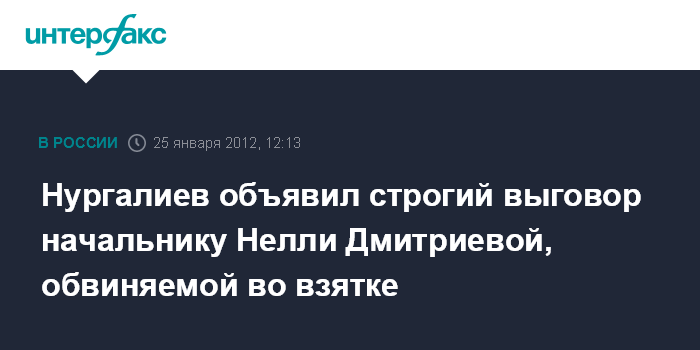 Нургалиев объявил строгий выговор начальнику Нелли Дмитриевой, обвиняемой во взятке