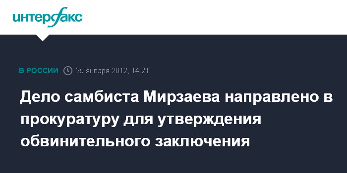 Москва. 25 января. NTERFAX.RU - Адвокаты закончили знакомиться с уголовным делом в отношении чемпиона мира по самбо Расула Мирзаева, после удара которого скончался 19-летний Иван Агафонов.