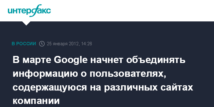 Москва. 25 января. INTERFAX.RU - С 1 марта Google Inc. начнет объединять информацию о пользователях, содержащуюся на различных сайтах компании, что, по оценкам экспертов, затруднит сохранение анонимности и может потребовать более серьезной защиты персональных данных, пишет The Wall Street Journal.