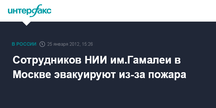 Москва. 25 января. INTERFAX.RU - Пожар возник в среду днем в здании НИИ Эпидемиологии и микробиологии им.Гамалеи, сообщил "Интерфаксу" начальник пресс-службы ГУ МЧС по Москве Евгений Бобылев.