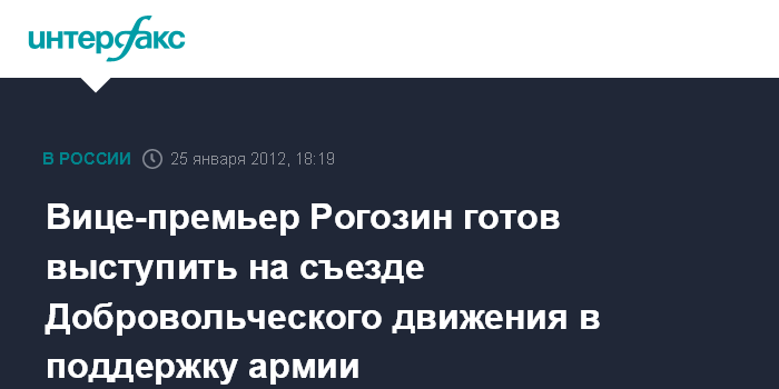 Вице-премьер Рогозин готов выступить на съезде Добровольческого движения в поддержку армии