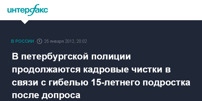 В петербургской полиции продолжаются кадровые чистки в связи с гибелью 15-летнего подростка после допроса