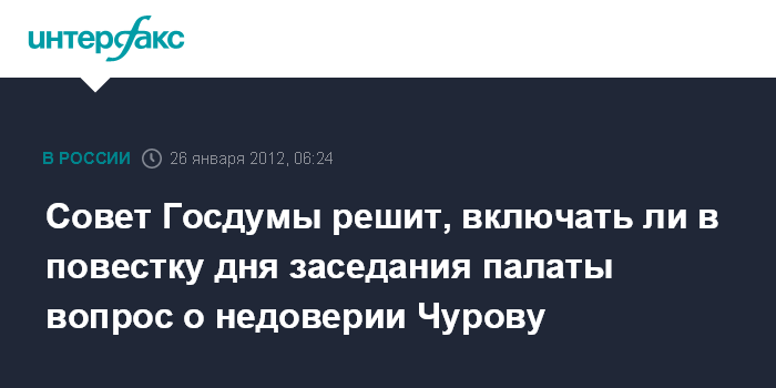 Совет Госдумы решит, включать ли в повестку дня заседания палаты вопрос о недоверии Чурову