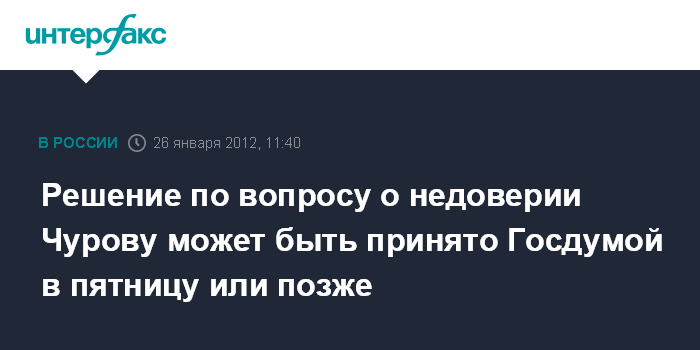 Решение по вопросу о недоверии Чурову может быть принято Госдумой в пятницу или позже