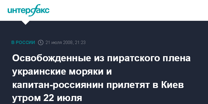 Освобожденные из пиратского плена украинские моряки и капитан-россиянин прилетят в Киев утром 22 июля