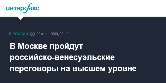 Москва. 22 июля. ИНТЕРФАКС - Президент РФ Дмитрий Медведев проведет во вторник переговоры с президентом Венесуэлы Уго Чавесом, который рано утром прибудет с визитом в Москву.