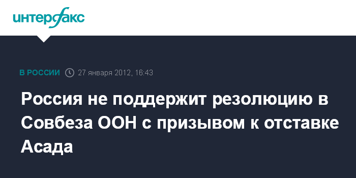 Россия не поддержит резолюцию в Совбеза ООН с призывом к отставке Асада