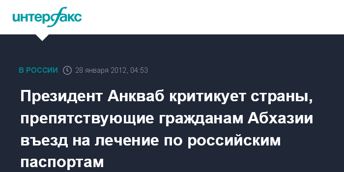 Президент Анкваб критикует страны, препятствующие гражданам Абхазии въезд на лечение по российским паспортам