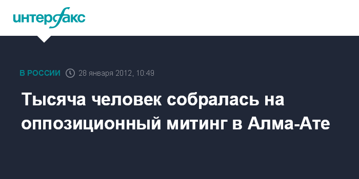 Алма-Ата. 28 января. INTERFAX.RU - Количество участников несанкционированного митинга оппозиции в Алма-Ате в субботу возросло до 1 тыс. человек, передал корреспондент агентства "Интерфакс-Казахстан". Перед собравшимися в сквере неподалеку от Дворца Республики выступают лидеры оппозиции.