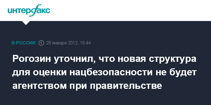 Рогозин уточнил, что новая структура для оценки нацбезопасности не будет агентством при правительстве