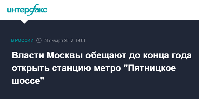 Власти Москвы обещают до конца года открыть станцию метро "Пятницкое шоссе"