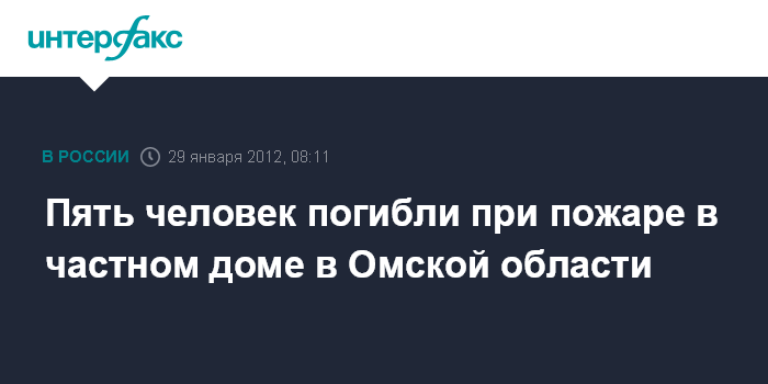Новосибирск. 29 января. ИНТЕРФАКС-СИБИРЬ - По предварительным данным, пять человек, в том числе трое детей, погибли в воскресенье при пожаре в частном жилом доме в районном центре Марьяновка Омской области.