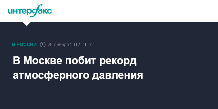 Москва. 29 января. INTERFAX.RU - В утренние часы в воскресенье атмосферное давление в столице достигло показателя 1032 гПа, сообщает интернет-портал "Метеоновости.ру". Таким образом, побит рекорд аномально высокого атмосферного давления, который был установлен 29 января 1984 года (1030,9 гПа).
