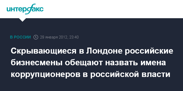 Скрывающиеся в Лондоне российские бизнесмены обещают назвать имена коррупционеров в российской власти