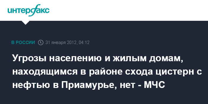 Хабаровск. 31 января. ИНТЕРФАКС-ДАЛЬНИЙ ВОСТОК - Сход цистерн с нефтью в Приамурье произошел примерно в 200 метрах от жилых домов села Малиновка Бурейского района, сообщает пресс-служба регионального МЧС.