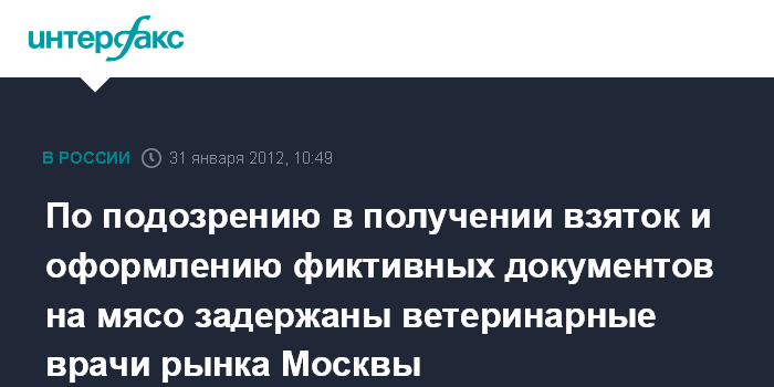 По подозрению в получении взяток и оформлению фиктивных документов на мясо задержаны ветеринарные врачи рынка Москвы