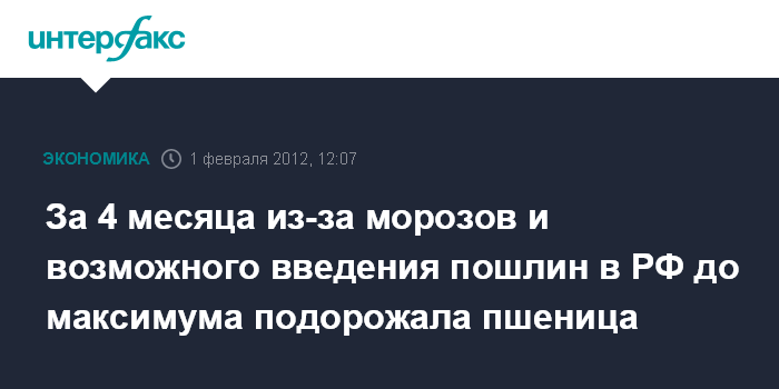 За 4 месяца из-за морозов и возможного введения пошлин в РФ до максимума подорожала пшеница