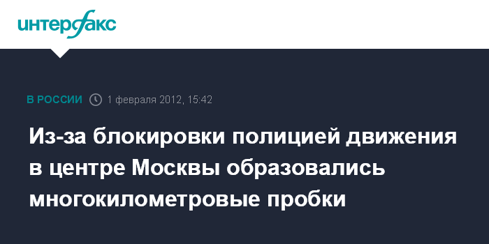 Из-за блокировки полицией движения в центре Москвы образовались многокилометровые пробки