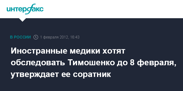 Иностранные медики хотят обследовать Тимошенко до 8 февраля, утверждает ее соратник