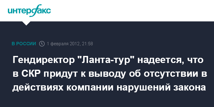 Гендиректор "Ланта-тур" надеется, что в СКР придут к выводу об отсутствии в действиях компании нарушений закона
