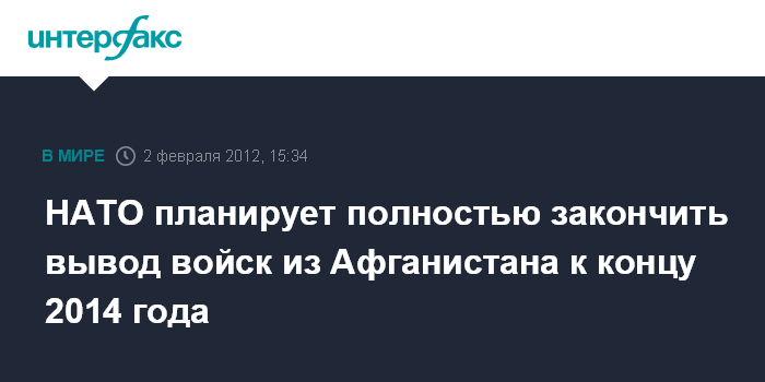Брюссель. 2 февраля. INTERFAX.RU - НАТО начнет вывод последней группы войск из Афганистана в середине 2013 г., написал генеральный секретарь Североатлантического альянса Андерс Фог Расмуссен в микроблоге Twitter.