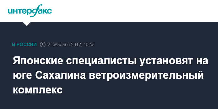 Южно-Сахалинск. 2 февраля. INTERFAX.RU - Ветроизмерительный комплекс установят в 2012 г. японские специалисты на юге Сахалина с целью изучения возможности ветрового потенциала для развития на острове альтернативной энергетики.