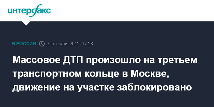 Москва. 2 февраля. INTERFAX.RU - Девять автомобилей столкнулись на третьем транспортном кольце в Москве, сообщил "Интерфаксу" источник в правоохранительных органах.