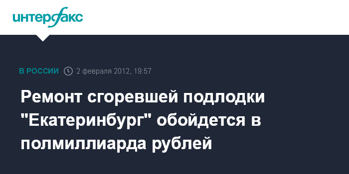 Ремонт сгоревшей подлодки "Екатеринбург" обойдется в полмиллиарда рублей