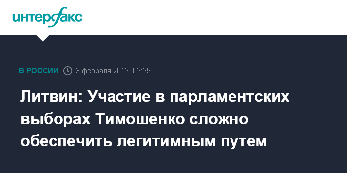 "Если выбирать легитимный путь и соблюдать все правовые формальности, то он будет очень сложным. Все остальное будет лежать в политической плоскости", - сказал В.Литвин в четверг вечером в эфире "5 канала" отвечая на вопрос о том, как может быть выполнено требование Парламентской ассамблеи Совета Европы об обеспечении легитимного участия Ю.Тимошенко и других бывших чиновников в парламентских выборах 2012 года.