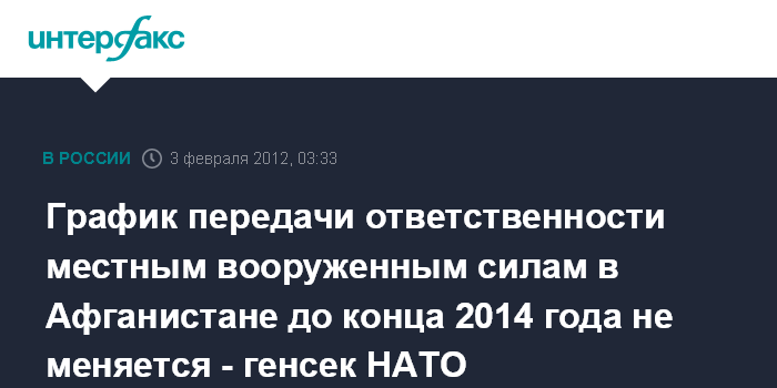 График передачи ответственности местным вооруженным силам в Афганистане до конца 2014 года не меняется - генсек НАТО