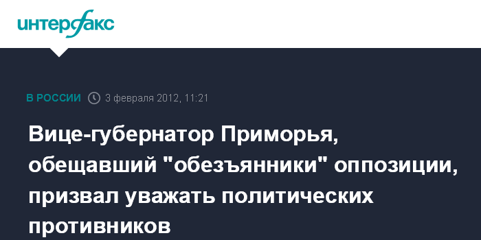 Вице-губернатор Приморья, обещавший "обезъянники" оппозиции, призвал уважать политических противников