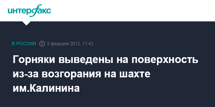 Горняки выведены на поверхность из-за возгорания на шахте им.Калинина