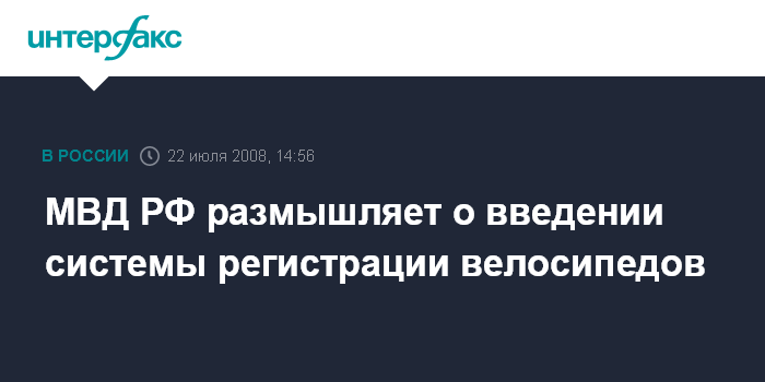 "В европейских странах вы можете взять велосипед напрокат. Многие из них, я видел, имеют идентификационные номера, так что они, наверное, тоже помещены в полицейские базы данных. Поэтому, может, и нам придется (ввести регистрацию - ИФ)", - сказал глава МВД РФ журналистам на открытии нового здания отдела ГИБДД в подмосковной Дубне.