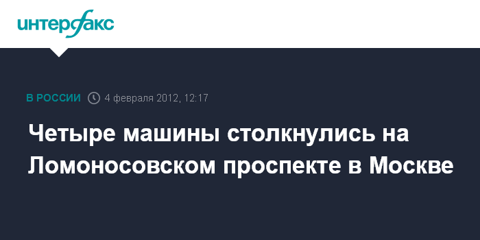 Москва. 4 февраля. INTERFAX.RU - ДТП с участием четырех легковых автомобилей произошло в субботу на Ломоносовском проспекте недалеко от пересечения с Мичуринским проспектом.