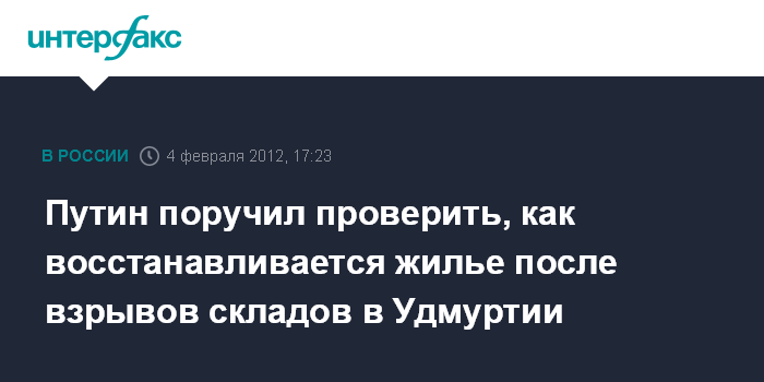 Путин поручил проверить, как восстанавливается жилье после взрывов складов в Удмуртии