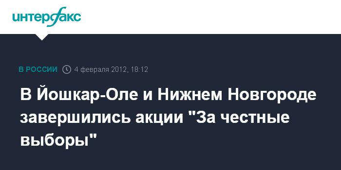 Йошкар-Ола/Нижний Новгород. 4 февраля. INTERFAX.RU - В столице Марий Эл Йошкар-Оле в субботу при тридцатиградусном морозе прошла акция "За честные выборы", сообщили агентству "Интерфакс-Поволжье" в пресс-службе республиканского МВД. По словам сотрудника пресс-службы, из-за холода ЛДПР и инициативная группа граждан объединили митинги, но и в нем в итоге участвовали всего примерно 50 человек.