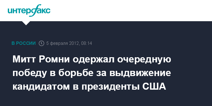 Митт Ромни одержал очередную победу в борьбе за выдвижение кандидатом в президенты США