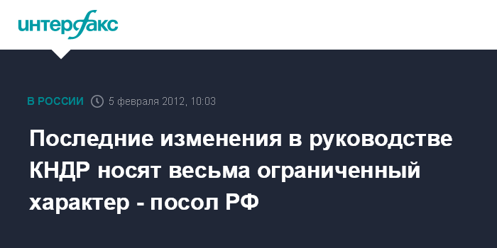 Последние изменения в руководстве КНДР носят весьма ограниченный характер - посол РФ
