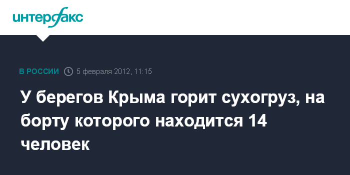 Киев. 5 января. INTERFAX.RU - В Керченском проливе примерно в 60 километрах от берега Крыма горит сухогруз "Иван Викулов", сообщил агентству "Интерфакс-Украина" помощник начальника Крымского главка МЧС Владимир Иванов