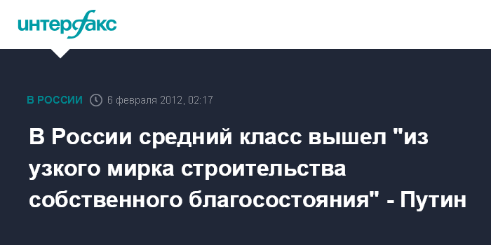В России средний класс вышел "из узкого мирка строительства собственного благосостояния" - Путин