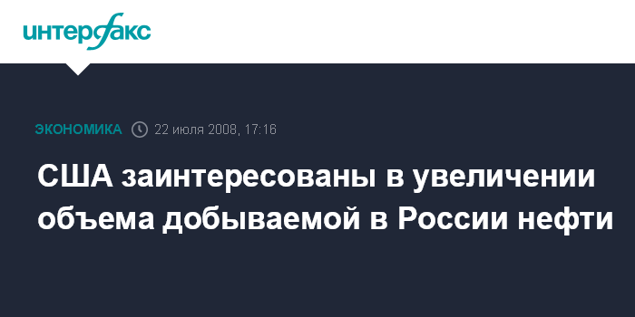Москва. 22 июля. INTERFAX.RU - Соединенные Штаты заинтересованы в увеличении добычи нефти в России и увеличении объема поставок российских энергоносителей, сообщил спецпосланник президента США по вопросам энергетики в Евразии Бойден Грей.