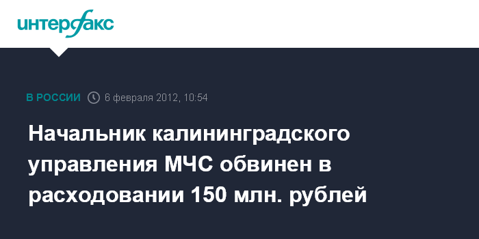 Начальник калининградского управления МЧС обвинен в расходовании 150 млн. рублей