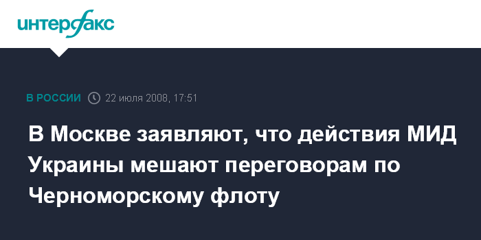 Москва. 22 июля. INTERFAX.RU – Заявление МИД Украины о подготовленном им законопроекте о выводе Черноморского флота РФ из Крыма является преждевременным и мешает конструктивно вести переговоры по этому и другим вопросам двусторонних отношений, убеждены в МИД России.