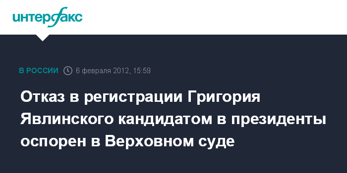Отказ в регистрации Григория Явлинского кандидатом в президенты оспорен в Верховном суде