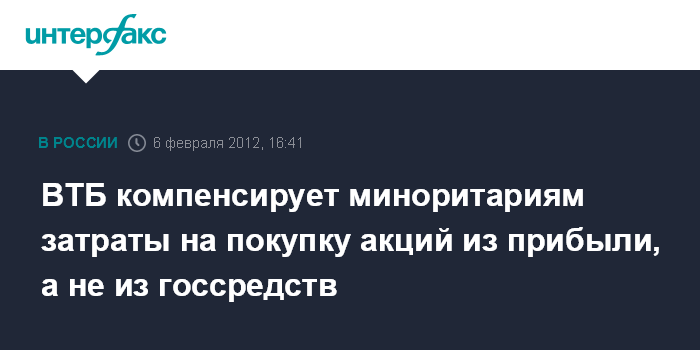 ВТБ компенсирует миноритариям затраты на покупку акций из прибыли, а не из госсредств